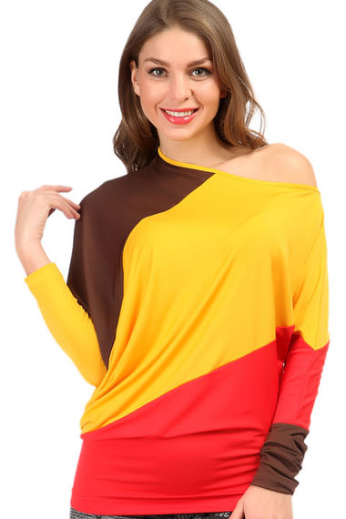 Такая солнечная блузка с длинными рукавами способна разбавить яркими красками любой гардероб! Благодаря асимметричному крою и большой горловине, ткань красиво драпируется складками, придавая блузке еще больше неординарности.