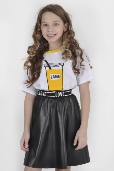 Фото товара 22668, черная юбка для девочки из кожзама